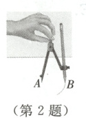 2. 如图所示的圆规,点$A$是铁尖的端点,点$B$是铅笔芯尖的端点,已知点$A$与点$B$的距离是$2 cm$,若铁尖的端点$A$固定,铅笔芯尖的端点$B$绕点$A$旋转一周,则作出的圆的直径是
