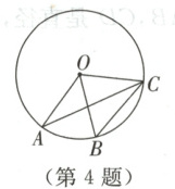 4. 如图,$A$,$B$,$C$是$\odot O$上的三个点,$\angle AOB = 50°$,$\angle B = 55°$,则$\angle A$的度数为