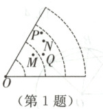 1.体育课上,小林在点$O$处进行了四次铅球试投,铅球分别落在图中的$M$,$N$,$P$,$Q$四个点处,则表示他最好成绩的点是