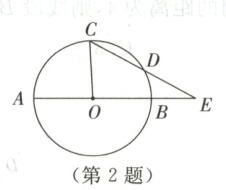 2. 如图,$\odot O$的直径$AB$与弦$CD$的延长线交于点$E$,若$DE = OB$,$\angle AOC = 87°$,则$\angle E$等于
