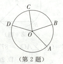 2. 如图,在$\odot O$中,$\overset{\frown}{AB} = \overset{\frown}{CD}$. 若$A$,$C$之间的距离为$4$,则线段$BD$的长度等于