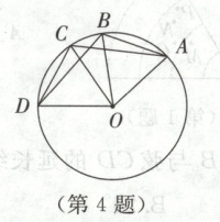 4. 如图,在$\odot O$中,$AB = CD$,则下列结论:①$AB = CD$;②$AC = BD$;③$\angle AOC = \angle BOD$;④$\overset{\frown}{AC} = \overset{\frown}{BD}$.