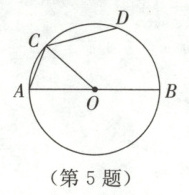 5. 如图,$AB$是$\odot O$的直径,点$C$在$\odot O$上,$\angle AOC = 40°$,$D$是$\overset{\frown} {BC}$的中点,求$\angle OCD$的度数.