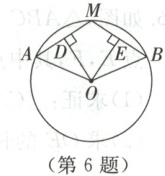 6. 如图,M为⊙O 上一点,OD⊥AM 于点 D,OE⊥BM 于点 E. 若 OD = OE,求证:$\overset{\frown}{AM}=\overset{\frown}{BM}$.