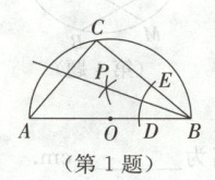 1. 如图,AB 为半圆 O 的直径,点 C 为半圆上一点,且∠CAB = 50°. 按以下步骤操作:①以点 B 为圆心,适当长为半径作弧,分别交 AB,BC 于 D,E 点;②分别以 D,E 为圆心,大于$\frac{1}{2}DE$ 的长为半径作弧,两弧交于点 P;③作射线 BP. 则∠ABP 等于 ()