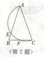 2. 如图,等腰三角形 ABC 的顶角∠BAC = 30°,以腰 AC 为直径作半圆交 AB 于点 E,交 BC 于点 F,则$\overset{\frown}{AE}$的度数是 ()