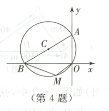 4. 如图,$\odot C$过原点,且分别与两坐标轴交于点$A$,$B$,点$A$的坐标为$(0,3)$,$M$是第三象限内$\odot C$上一点,$\angle BMO = 120^{\circ}$,则$\odot C$的半径为