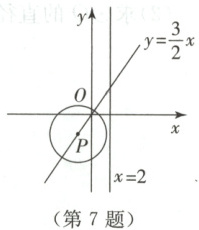 7. 如图,$P$为正比例函数$y = \frac{3}{2}x$图象上的一个动点,$\odot P$的半径为3,设点$P$的坐标为$(x, y)$.