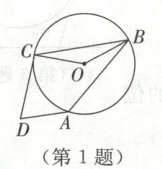1. 如图,⊙O 中,$\overset{\frown}{AB} = \overset{\frown}{CB}$,过点 A 作 BC 的平行线交过点 C 的圆的切线于点 D,若$\angle ABC = 46^{\circ}$,则