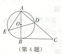4. 如图,$CB$切$\odot O$于点$B$,$CA$交$\odot O$于点$D$,且$AB$为$\odot O$的直径,点$E$是$\overset{\frown}{ABD}$上异于点$A$,$D$的