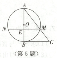 5. 如图,在$\triangle ABC$中,以 AB 为直径的⊙O 交 AC 于点 M,弦$MN// BC$交 AB 于点