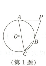 1. 如图,$PA$,$PB$是$\odot O$切线,$A$,$B$为切点,点$C$在$\odot O$上,且$\angle ACB = 55^{\circ}$,则$\angle APB$等于 (