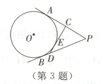 3. 如图,$PA$,$PB$切$\odot O$于点$A$,$B$,$PA = 10\ cm$,$CD$切$\odot O$于点$E$,交$PA$,$PB$于点$C$,$D$,则$\triangle PCD$的周长是