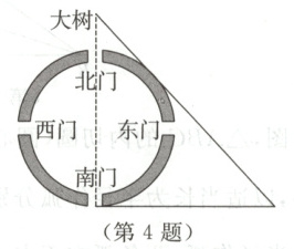 4. 小明对《数书九章》中的“遥度圆城”问题进行了改编:如图,一座圆形城堡有正东、正南、正西和正北四个门,出南门向东走一段路程后刚好看到北门外的一棵大树,向树的方向走$9$里到达城堡边,再往前走$6$里到达树下.则该城堡的外围直径为