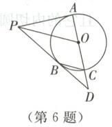 6. 如图,已知$PA$和$PB$分别与$\odot O$相切于$A$,$B$两点,作直径$AC$并延长,交$PB$的延长线于点$D$.连结$OP$,$CB$.