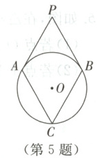 5. 如图,$PA$,$PB$分别与$\odot O$相切于点$A$,$B$,$\odot O$上有一点$C$,已知点$A$,$B$,$C$三等分$\odot O$,$\angle P = 60^{\circ}$.