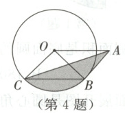 4.如图,$A$是半径为$2$的$\odot O$外一点,$AB$是$\odot O$的切线,点$B$是切点,弦$BC// OA$,$OC// AB$,连结$AC$,则图中阴影部分的面积为$\underline{\hspace{5em}}$.