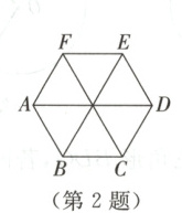 2. 如图,$AD,BE,CF$是正六边形$ABCDEF$的对角线,图中平行四边形的个数是 (