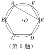 9. 如图,点$A,B,C,D,E,F$都在$\odot O$上,且$AB = BC = CD = DE = EF = AF$,若$\odot O$的半径为$6$,求$AE$的长.