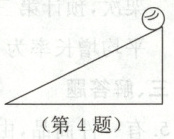 4.如图,钢球从斜面顶端静止开始沿斜面滚下,速度每秒增加1.5 m/s,在这个问题中,距离=平均速度$v$×时间$t$,$v = \frac{ - v_{0} + v_{t}}{2}$,其中$v_{0}$是开始时的速度,$v_{t}$是$t$秒时的速度.如果斜面的长是18 m,钢球从斜面顶端滚到底端的时间为