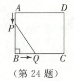 24. (12分)如图,在矩形$ABCD$中,$AB=5cm$,$BC=6cm$,点$P$从点$A$开始沿边$AB$向终点$B$以$1cm/s$的速度移动,点$Q$从点$B$开始沿边$BC$向终点$C$以$2cm/s$的速度移动.如果$P$,$Q$分别从$A$,$B$同时出发,当点$Q$运动到点$C$时,两点停止运动.设运动时间为$t s(t>0)$.