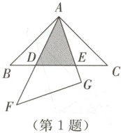 1. 将两个完全相同的等腰直角三角形 ABC 与 AFG 按照如图所示的方式摆放,且两个三角形的重叠部分为△ADE,则相似的两个三角形是 (