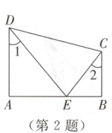 2. 如图,DA⊥AB,BC⊥AB,点 E 在边 AB 上,且∠1 = ∠2,则以下选项正确的是 (