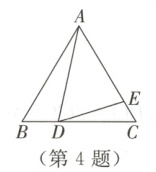 4. 如图,在等边三角形ABC中,点D,E分别在边BC,AC上,且∠ADE = 60°,BD = 1,CE = $\\tfrac{2}{3}$,则△ABC的边长为