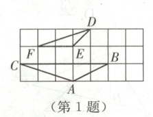1. 如图,在正方形网格上有两个相似三角形$\triangle ABC$和$\triangle EDF$,则$\angle BAC$的度数为