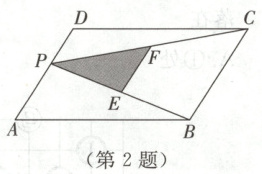 2. 如图,$P$为平行四边形$ABCD$边$AD$上一点,$E$,$F$分别为$PB$,$PC$的中点,$\triangle PEF$,$\triangle PDC$,$\triangle PAB$的面积分别为$S$,$S_1$,$S_2$,若$S = 2$,则$S_1 + S_2$等于(