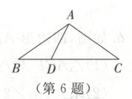 6. 如图,在$\triangle ABC$中,$D$是$BC$边上一点,且$AD = 5\ cm$,$BD = 4\ cm$,$\triangle ABD$和$\triangle ABC$的面积比为$1:4$,若$AB^{2}=BD· BC$,求$\triangle ABC$的周长.