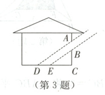 3. 如图,某时刻阳光通过窗口 AB 照射到室内,在地面上留下 4 米宽的“亮区”DE,已知$\frac{BC}{EC}=\frac{1}{2}$,那么窗口的高 AB =