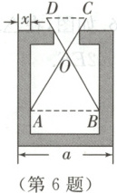 6. 如图,已知零件的外径为$a$,现用一个交叉卡钳(两条尺 AC 和 BD 长度相等)测量零件的内孔直径 AB. 如果$OA:OC = OB:OD = n$,且量得$CD = b$,求 AB 以及零件厚度$x$.