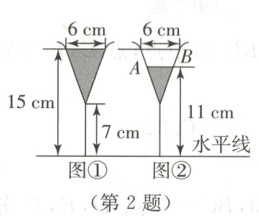 2. 如图①所示的是装了液体的高脚杯示意图(数据如图),用去一部分液体后如图②所示,此时液面宽 AB 等于