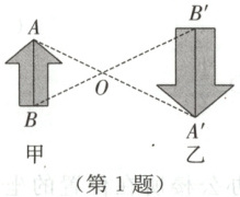 1. 如图,图形甲与图形乙是位似图形,$O$是位似中心,相似比为$2:3$,点$A$,$B$的对应点分别为点$A'$,$B'$.若$AB = 6$,则$A'B'$的长为