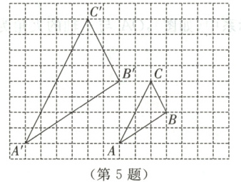 5. 图中的网格都是边长为$1$的正方形,$\triangle ABC$与$\triangle A'B'C'$是以点$O$为位似中心的位似图形,它们的顶点都在小正方形的顶点上.