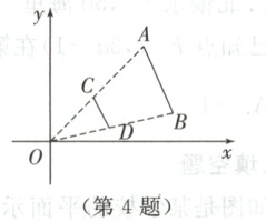 4. 如图,线段$AB$两个端点的坐标分别为$A(6,6)$,$B(8,2)$.以原点$O$为位似中心,在第一象限内将线段$AB$缩小为原来的$\frac{1}{2}$后得到线段$CD$,则端点$C$的坐标为