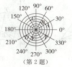 2. 如图所示的是雷达探测到的$6$个目标,若目标$B$用$(30,60^{\circ})$表示,目标$D$用$(50,210^{\circ})$表示,则表示为$(40,330^{\circ})$的是 (