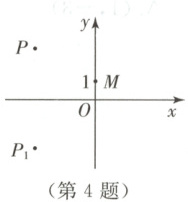 4. 如图,一只跳蚤从$M$点出发,先向上爬行了$2$个单位,又向左爬行了$3$个单位到$P$点,然后跳到与点$P$关于$x$轴对称的点$P_1$处,则点$P_1$的坐标为