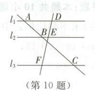 10. 如图,如果$l_1//l_2//l_3$,$AC = 12$,$DE = 3$,$EF = 5$,那么$BC =$