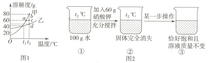 (填“甲”或“乙”)物质。(4)图“某一步操作”前后的溶液状态变化过程可以在图中表示为