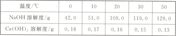 ${ 2 } }$在不同温度下的溶解度如下表所示。(1)$20 ^ { \circ } \mathrm { C }$时$\mathrm { NaOH }$的溶解度为