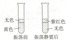 4. 向5 mL 碘的水溶液(黄色)中加入2 mL 汽油(无色),振荡静置,实验现象如图所示。由该实验不能得出的结论是