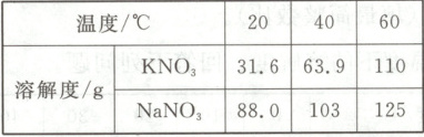9. 如表是$KNO_3$和$NaNO_3$在不同温度时的溶解度,小明用其中一种物质(X)进行了如图所示的实验(水蒸发忽略不计)。下列分析错误的是