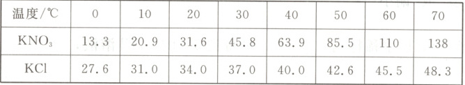 14. $KNO_3$和$KCl$在不同温度时的溶解度如下表所示: