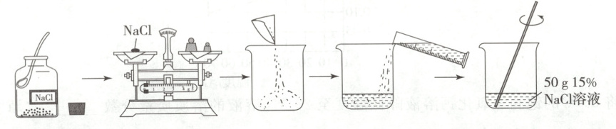 15. 如图所示是实验室配制一定溶质质量分数的$NaCl$溶液的流程图。请回答: