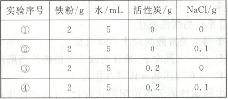 实验 6:设计如下表格中所示的实验,探究脱氧剂中活性炭和食盐的作用。