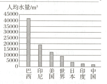 4.如图是某些国家的人均水量和世界人均水量柱状图。