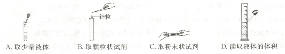 4. 液体试剂通常盛放在细口瓶中,常用倾倒的方法取用。如图所示,关于实验用品的使用正确的是