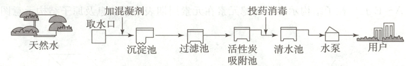 吸附水中的色素和异味。(2) 在净水过程中加入混凝剂,目的是